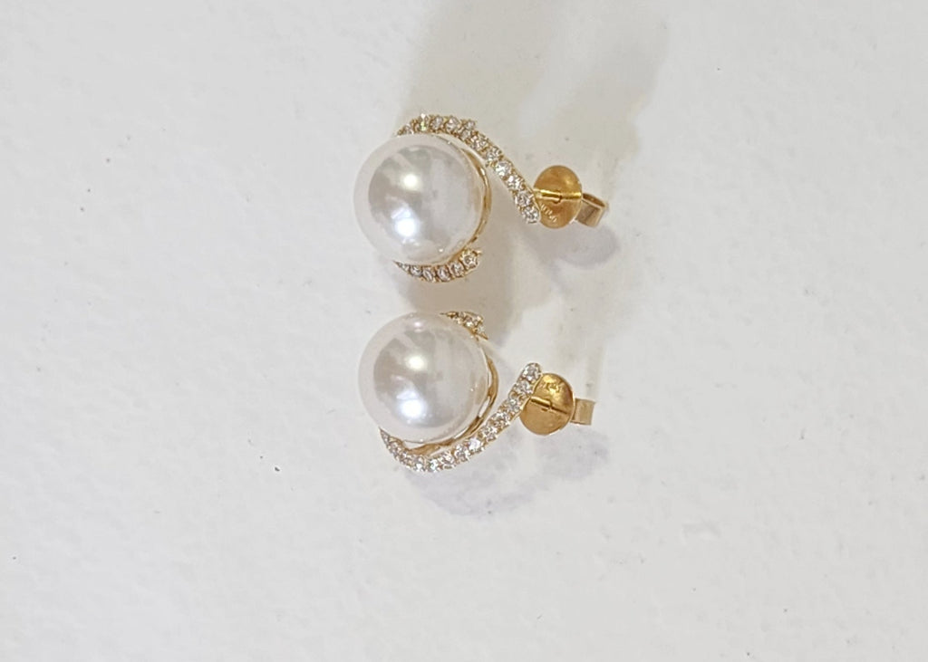 Lustrous south sea white pearl in 18k gold diamond earring